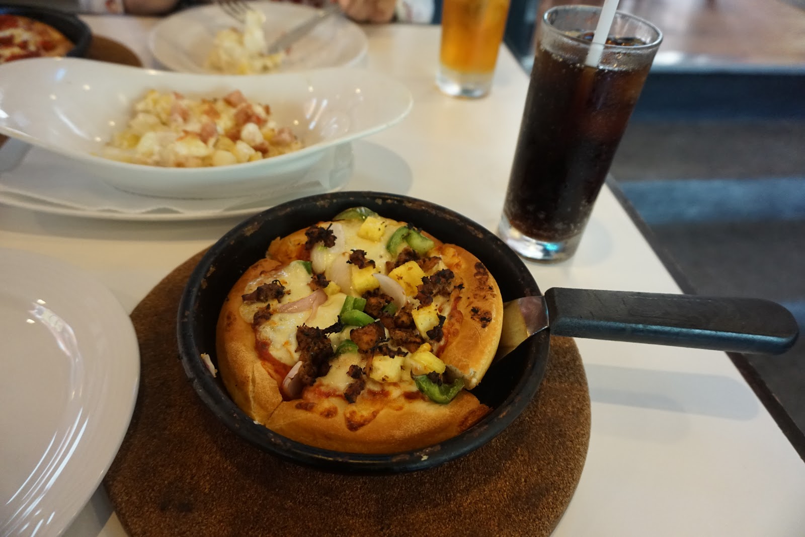 すでに辛いの恐怖症になってしまっている私たち。向かいのピザハットに向かう。